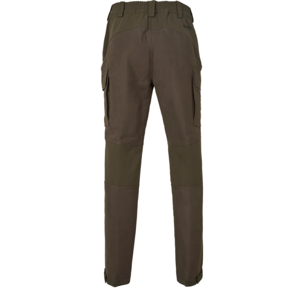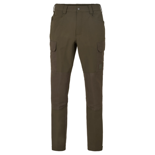 Hlače Härkila Hill dokaz su savršene kombinacije tišine, izdržljivosti i udobnosti u lovačkoj odjeći. Izrađene od visokokvalitetnih materijala, ove hlače imaju promišljen dizajn koji zadovoljava specifične potrebe aktivnih lovaca. Središnje prednje kopčanje koristi traperice, upotpunjeno kontrastnim gumbom za dodatnu sigurnost, osiguravajući pouzdano pristajanje tijekom kretanja. Elastični stražnji pojas pruža fleksibilnost i udobnost, prilagođavajući se tijelu korisnika tijekom raznih lovačkih aktivnosti. Praktičnost je u prvom planu dizajna, s lako dostupnim gornjim džepovima i džepovima na bedrima zaštićenim preklopima s tihim magnetskim zatvaračima, što omogućuje brz i bešuman pristup osnovnim potrepštinama. Desni džep na bedru uključuje namjenski držač za patrone, ključnu značajku za lovce. Remen za podešavanje na donjem rubu omogućuje prilagodljivo pristajanje, prilagođavajući se različitim stilovima čizama i sprječavajući ulazak krhotina. Hlače se također mogu pohvaliti DWR tretmanom bez PFAS-a, što povećava njihovu otpornost na vodu i prljavštinu. S modernim krojem koji ne ugrožava funkcionalnost, hlače Hill idealan su izbor za lovce koji zahtijevaju udobnost, praktičnost i pouzdanost u svojoj terenskoj opremi.